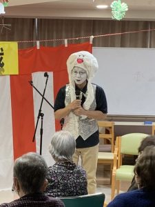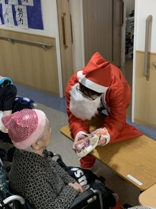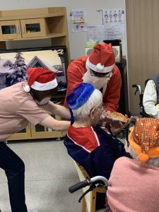 ぬくもりの郷 令和7年 ぬくもりの郷 クリスマス会を開催しました! 12月25日ぬくもりの郷の1階ホールにてクリスマスイベントが行われました。 午前は、職員による紅白歌合戦!今年の優勝は紅組でした。 この日のお食事はクリスマスメニューで、幸せなひとときとなりました。 午後には1Fフロアでクリスマス会が行われました。集まった皆さんでクリスマスソングを歌い、 サンタからのプレゼント、そしてアイスケーキをいただき、皆さんの多くの笑顔が見られました。